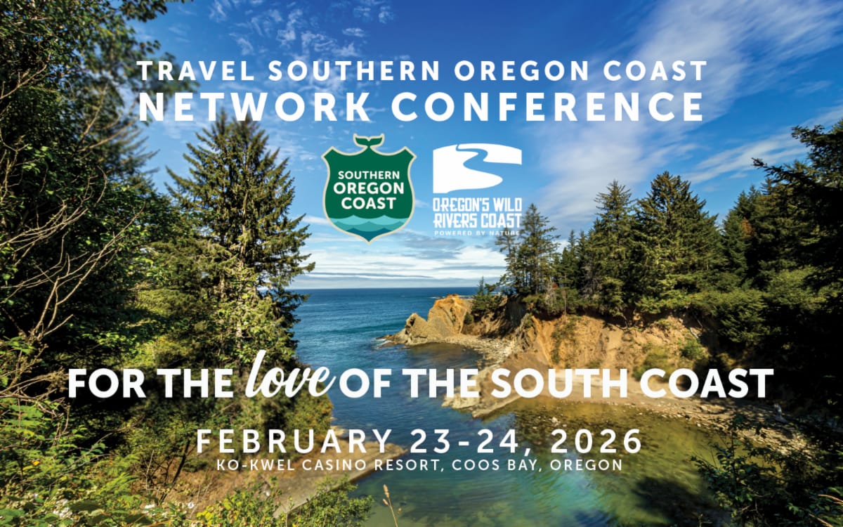 Join us as we Co-Sponsor this now premier conference for all south coast stakeholders in the tourism industry on February 23-24 for the TSOC Network Conference at the Ko-Kwel Casino Resort in North Bend. Now in its fourth year, the conference brings together tourism professionals, community leaders, business owners, and partners from across the Southern Oregon Coast. It’s a chance to connect, collaborate, and generate ideas to strengthen our region’s visitor economy. The full agenda is available now — don’t wait to secure your spot, as the conference sells out every year. We will be giving out conference sponsorships, please inquire at [email protected].